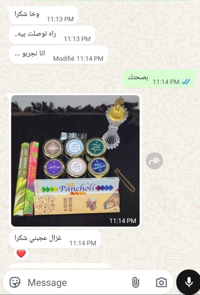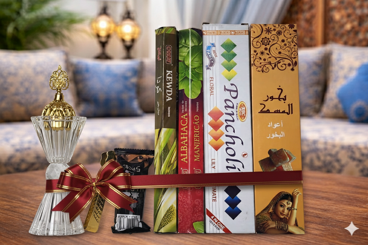 - ✔ 4 علب أعواد بخور (مسك وزهور)